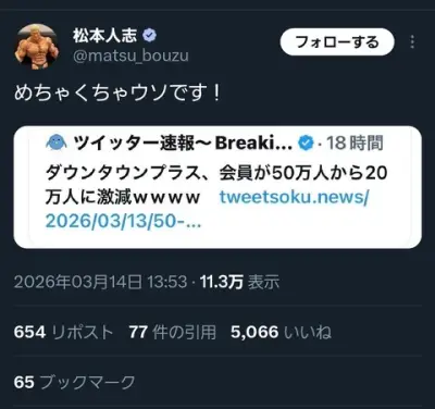 【悲報】松本人志さん、『ツイ速』にブチギレ
