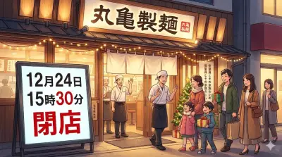 丸亀製麺「うーん、社員に報いたいな。せや!12月24日の閉店時間を15:30にして家族と過ごす時間を作ったろwwwww」