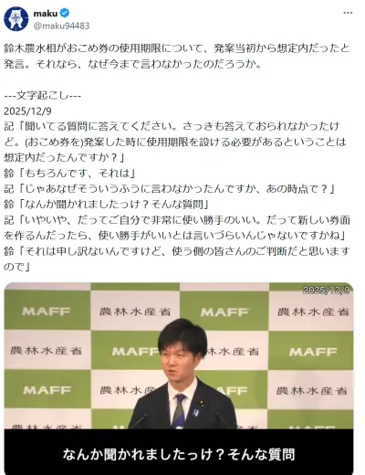 鈴木農相「おこめ券を米価の維持に利用するつもりは一切ない!」