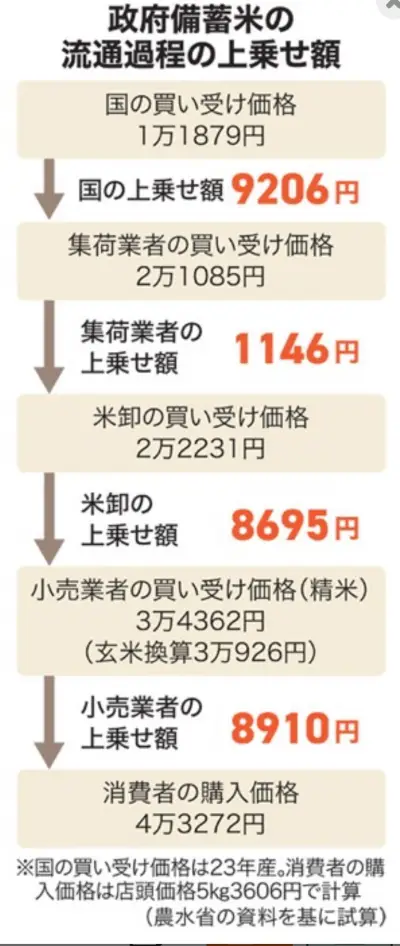 【備蓄米】上乗せ額が大きいのは? 国、卸、小売り…各9000円前後