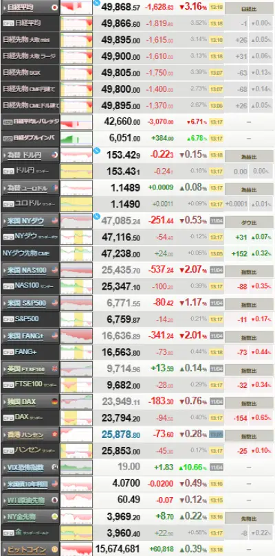 【相場】本日は全面的に一旦売りの動き 片山財務相の口先介入に始まり、高市首相のスタンス転換懸念 ボウマンFRB理事の利下げ支持、米政府閉鎖長期化も