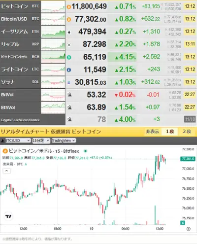 【相場】ビットコイン、さらに上昇し7万7000ドル台乗せ