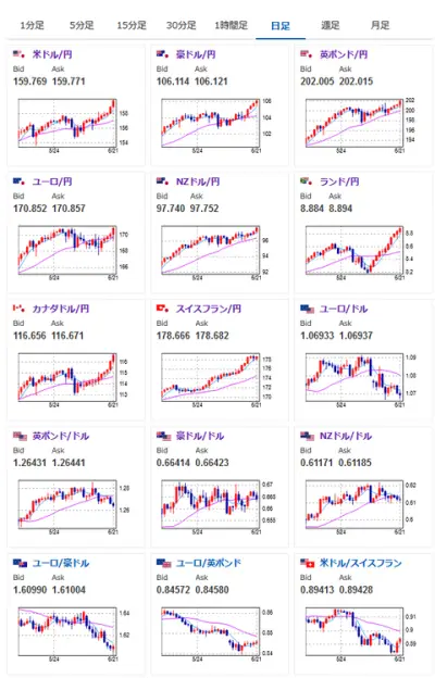 【為替相場】週明け、6月会合主な意見で円安に向かうも160円には乗せられず一旦押し戻される 仮想通貨市場はあまり良い材料がなく下落傾向