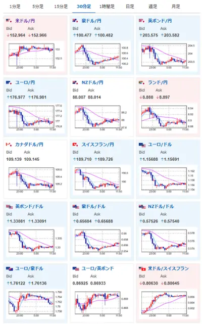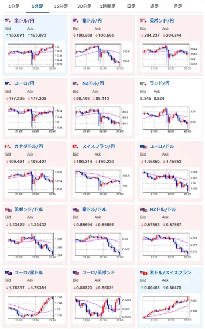 【為替相場】ドル円は横這い圏で153円付近 株価は本日は下落気味 金は夜間に崩れるも持ち直し