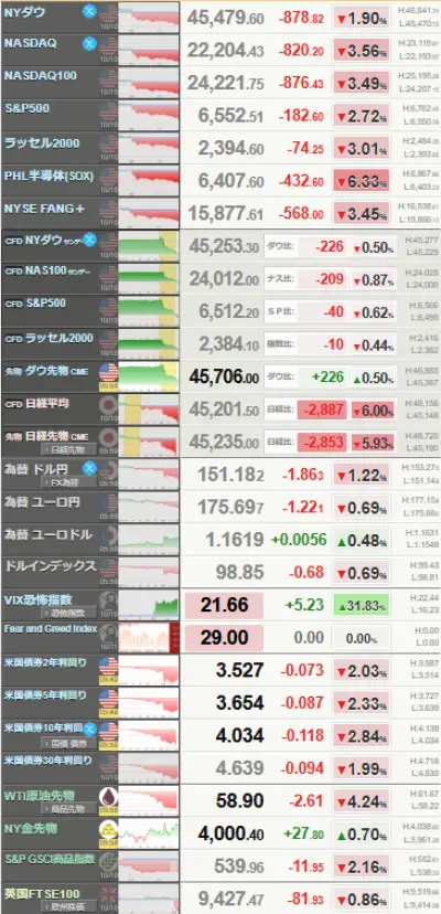 【相場】NYダウ一時800ドル安、円は151円台に上昇、米中首脳会談中止、中国が敵対的規制、トランプ氏が中国に大幅関税引上げ