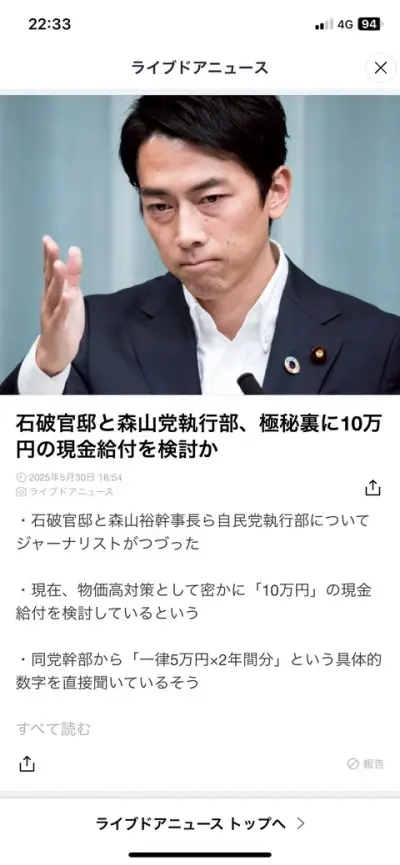 石破政権、極秘裏に10万円給付金を検討!?!?!?