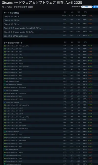 Steamユーザーグラボシェアランキング(2025年4月)がこちら