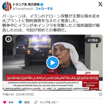 イラン大統領「地域諸国への攻撃はやめます」 →バーレーンの海水淡水化プラントにドローン攻撃