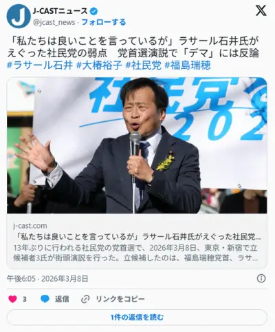 【社民】「私たちは良いことを言っているが」ラサール石井氏がえぐった党の弱点 党首選演説で「デマ」には反論