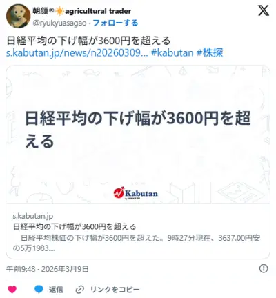 【崖】日経平均超絶大暴落中