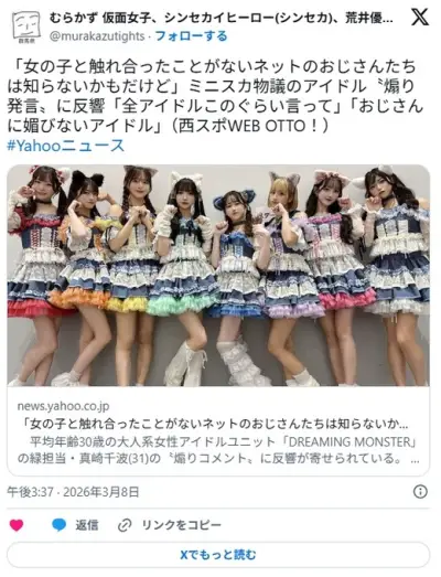 「女の子と触れ合ったことがないネットのおじさんたちは知らないかもだけど」ミニスカ物議のアイドル〝煽り発言〟に反響