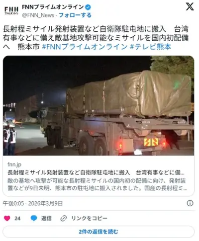 【速報】 日本、台湾有事に備え、敵基地攻撃可能な長距離ミサイルを熊本に配備
