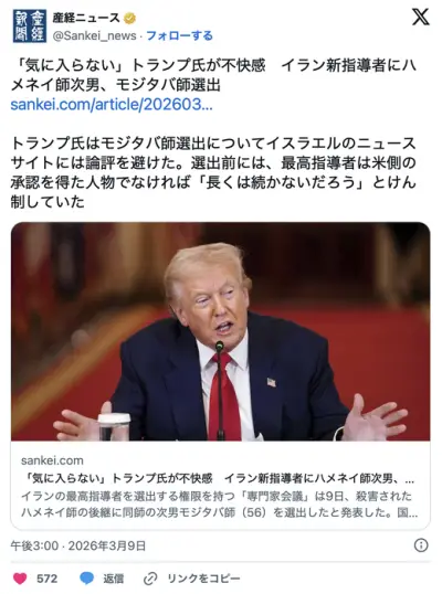 トランプ、イラン最高指導者後継のモジダバ氏を抹殺宣言『すぐに父親の後を追わせてやる』