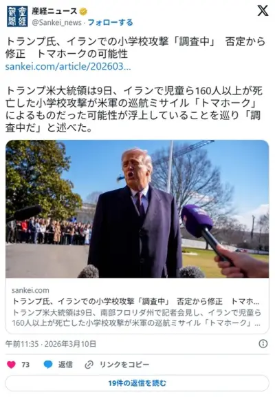 トランプ大統領、小学校攻撃「調査中」 イラン児童ら死亡、否定から修正