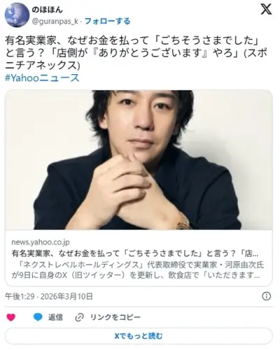 有名実業家、なぜお金を払って「ごちそうさまでした」と言う?「店側が『ありがとうございます』やろ」