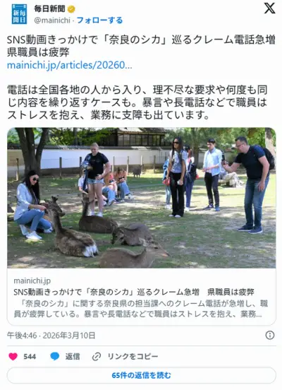 【🦌】SNS動画きっかけで「奈良のシカ」巡るクレーム急増 県職員は疲弊