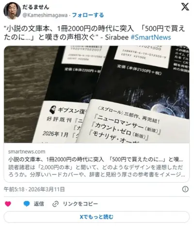 海外小説の文庫本、1冊2000円の時代に突入 「500円で買えたのに…」と嘆きの声相次ぐ