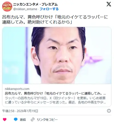 【芸能】呂布カルマ、いじめ被害の少年らに異色呼びかけ 「地元のイケてるラッパーに連絡してみ。絶対助けてくれるから」