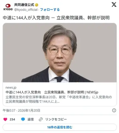 国民民主党議員、玉木を裏切り中道移籍