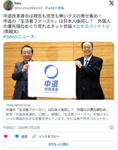 【中道】悪意のあるロゴの改変…中道改革連合がXで『注意喚起』 SNS上で拡散「虚偽の示唆」「一切関係ありません」