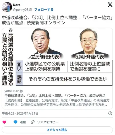 『とにかく仏敵高市さえ引きずり下ろせばうまくいく』創価学会、意見が一致 一枚岩で中道へ全力支援へ