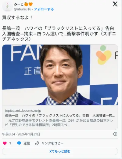【芸能】長嶋一茂 ハワイの「ブラックリストに入ってる」告白 入国審査→拘束→四つん這いで…衝撃事件明かす