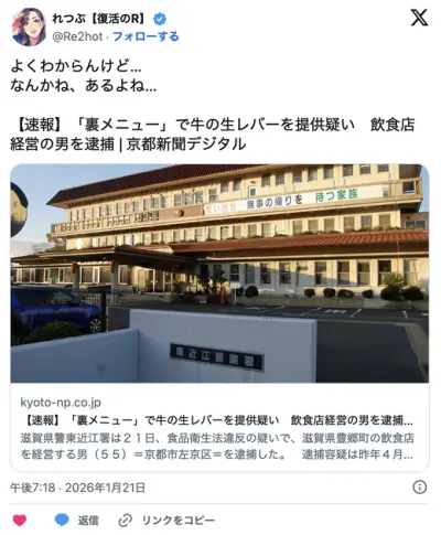 「裏メニュー」で牛の生レバーをズルっと提供していた疑い 飲食店経営の男を逮捕