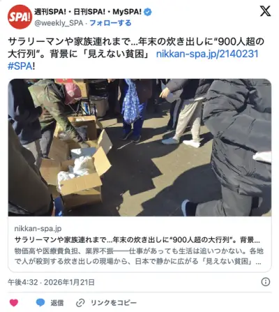 サラリーマンや家族連れまで…年末の炊き出しに“900人超の大行列”。背景に「見えない貧困」