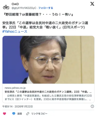 高市総理、日本国民を脅す「負けたら野田総理、または斎藤総理になります」