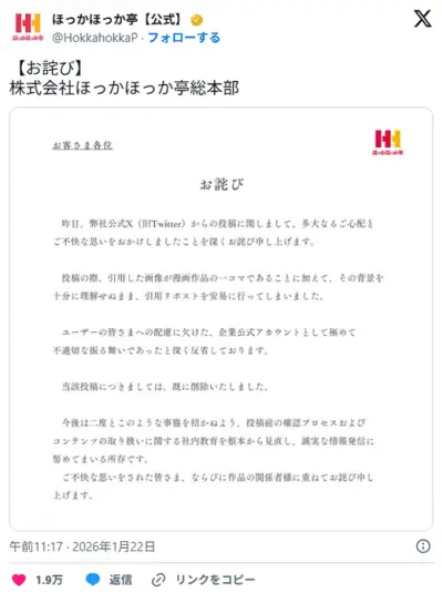 ほっかほっか亭、炎上謝罪