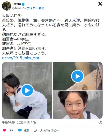 【動画】大阪の中学生さん、小学生相手に暴行&海に突き落とすというイジメを披露