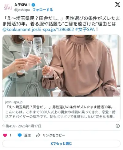 【婚活】「え~埼玉県民?田舎だし…」男性選びの条件がズレたまま婚活30年の63歳女性。着る服や話題も“ご縁を遠ざけた”理由とは