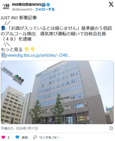 基準値5倍超の飲酒運転で逮捕の男「私の体に酒が入っているとは感じない。つまり飲酒運転はしてない」