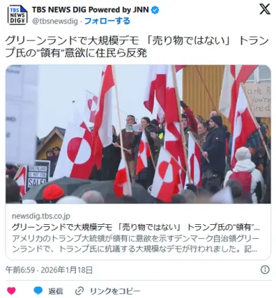 【国際】グリーンランドで大規模デモ 「売り物ではない」 トランプ氏の“領有”意欲に住民ら反発