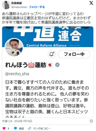 蓮舫「中革連に連帯します」 X民「あなたのいる参議院に中革連は無いんですが大丈夫ですか」