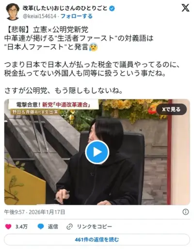 中革連が掲げる"生活者ファースト"の対義語は“日本人ファースト”