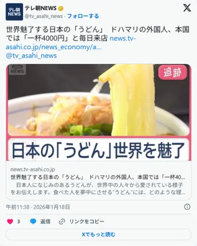 【食】世界魅了する日本の「うどん」 ドハマリの外国人、本国では「一杯4000円」と毎日来店