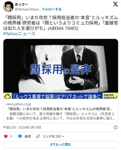 「顔採用」いまだ存在?採用担当者の本音とルッキズムの境界線 研究者は「顔というよりコミュ力」「面接官は似た人を選びがち」