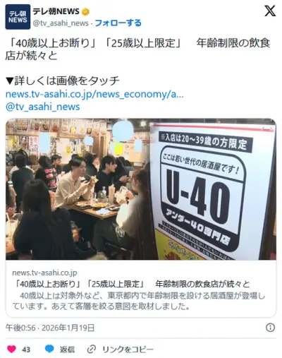 「40歳以上お断り」「25歳以上限定」 年齢制限の飲食店が続々と