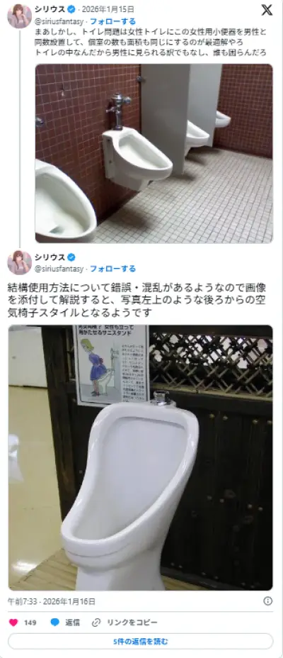 【🚺】国交省の女性トイレ増設案で注目された《女性用小便器》が瞬く間に拡散「どうやって使うの!?」