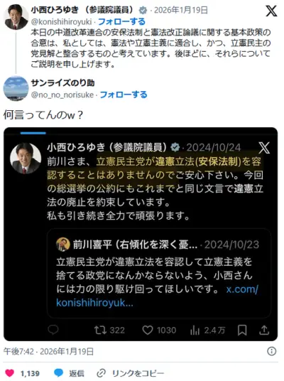 【悲報】小西ひろゆきさん、折伏完了 亡命せず