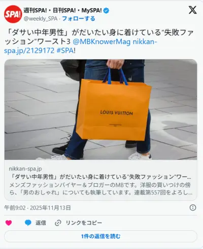 「ダサい中年男性」がだいたい身に着けている“失敗ファッション”ワースト3