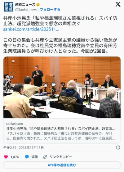 共産・小池晃「私や福島瑞穂さん監視される」 スパイ防止法に懸念の声