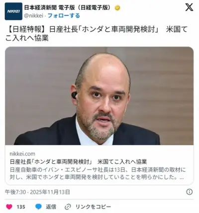 |ω・)チラ 日産「ホンダさん、一緒に車両開発しませんか」