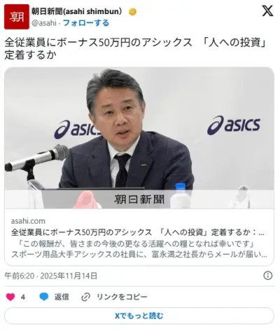 全従業員にボーナス50万円のアシックス 「人への投資」定着するか