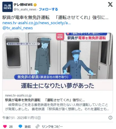 【養老鉄道】「運転士になりたい夢があった」無免許の駅員、電車を運転