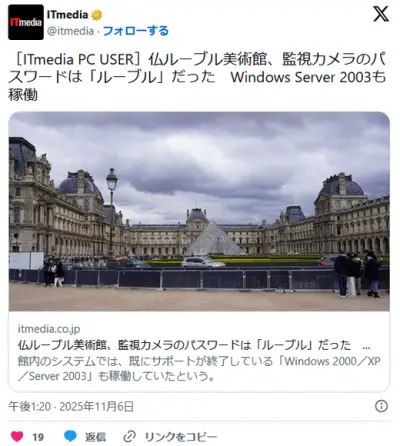 ルーブル美術館、ガバガバだった 監視カメラパスワードは「ルーブル」 Windows2000等も稼働