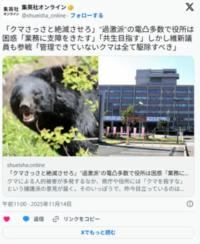 役場への「クマ殺すな!」電凸クレームの次は「クマ絶滅させろ!」の電凸 どうすりゃいいんだよ