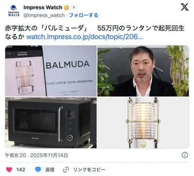 【まるで成長していない・・・】 バルミューダ、55万円のランタンで起死回生へ