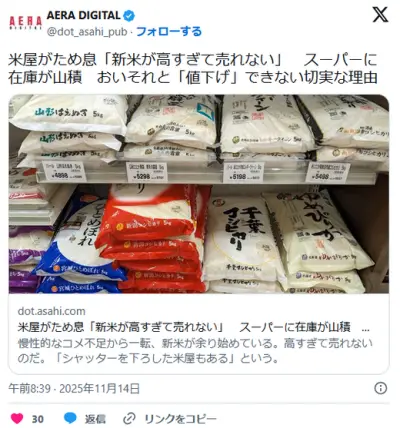【食】コメ屋がため息「新米が高すぎて売れない」5キロ5800円、スーパーに在庫が山積み「何軒の米屋がつぶれるかわからない」